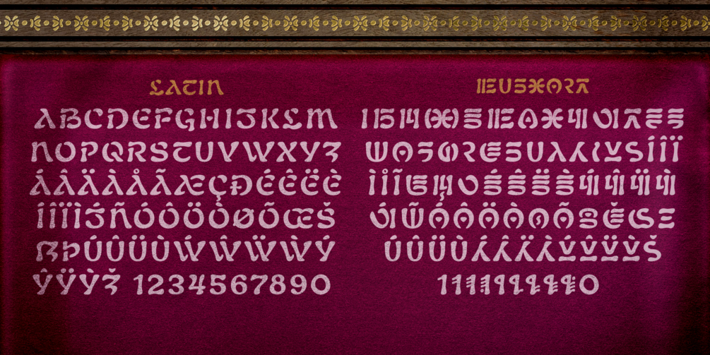 Latin and Naboo Futhork font family by AurekFonts and published by Crown.